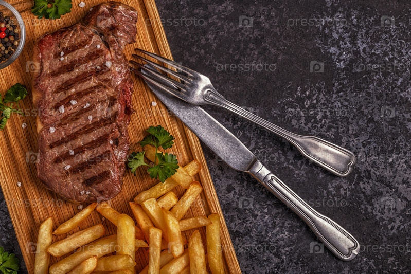 Стейк барбекю из говядины с картофелем фри