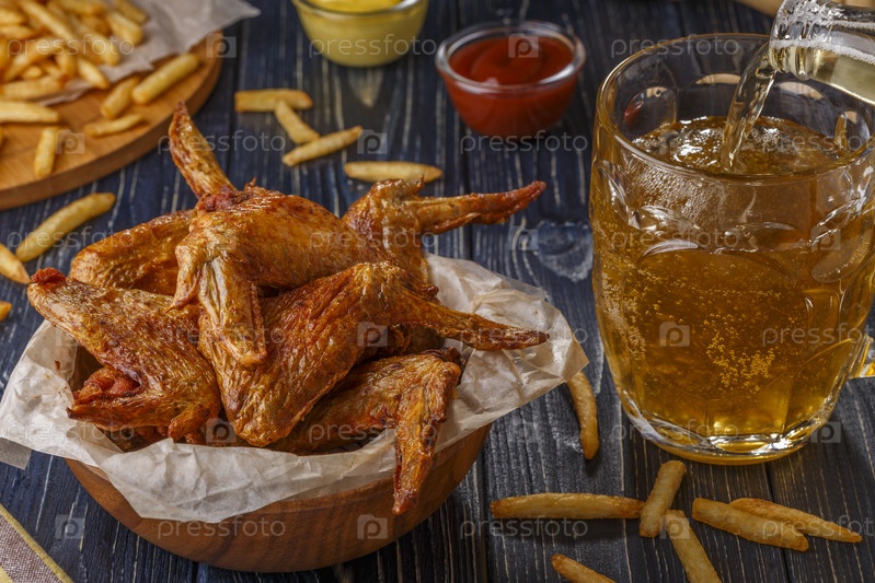 Крылышки Баффало с картофелем фри и пивом