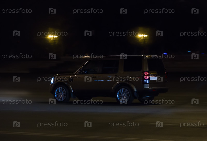 Внедорожник едет ночью по улице