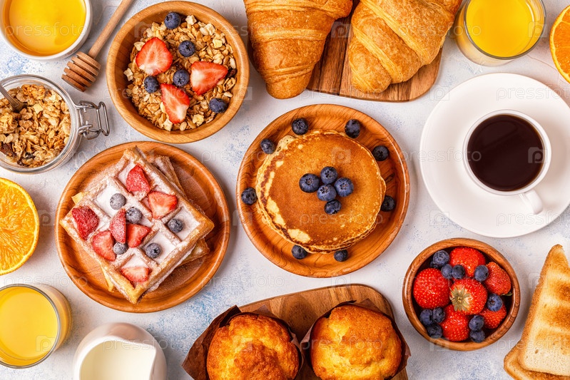Вкусный завтрак на светлом столе