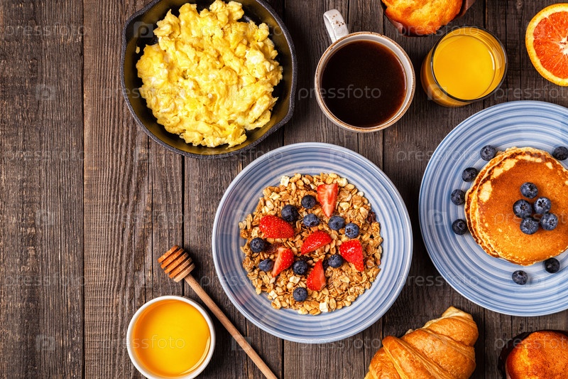 Вкусный завтрак на деревенском столе