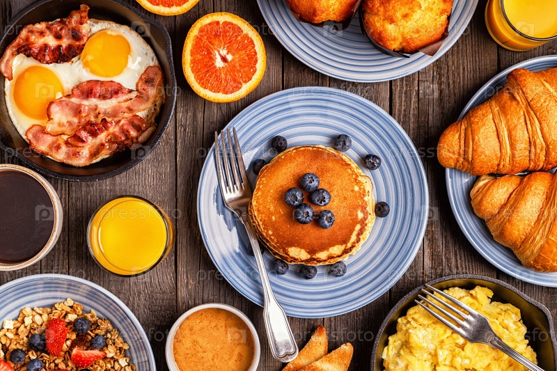 Вкусный завтрак на деревенском столе