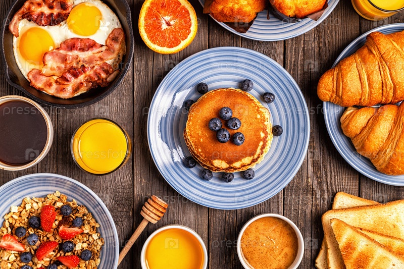 Вкусный завтрак на деревенском столе