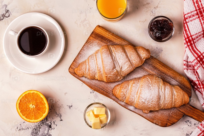 Вкусный завтрак со свежими круассанами