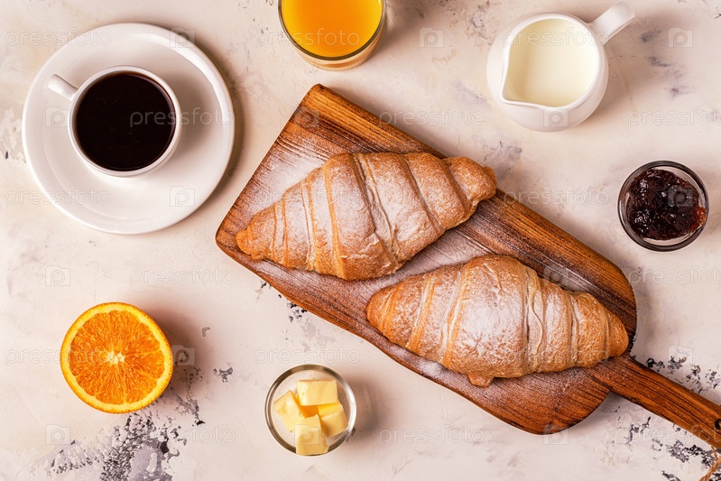 Вкусный завтрак со свежими круассанами