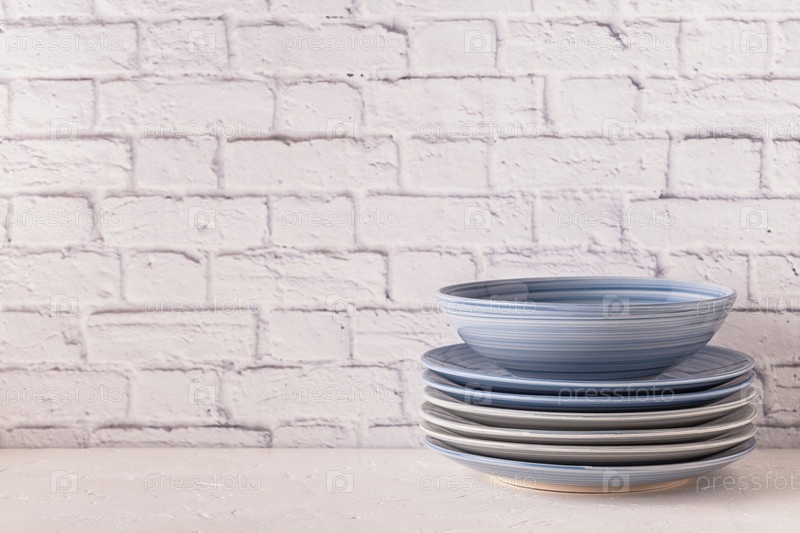 Посуда на светлом столе с копией пространства