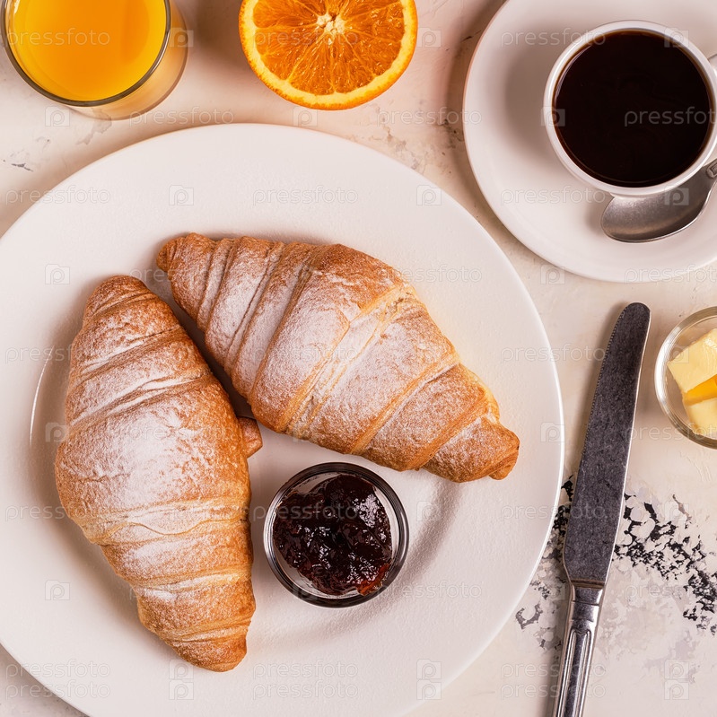 Вкусный завтрак со свежими круассанами