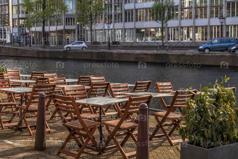 Вид на пустое уличное кафе