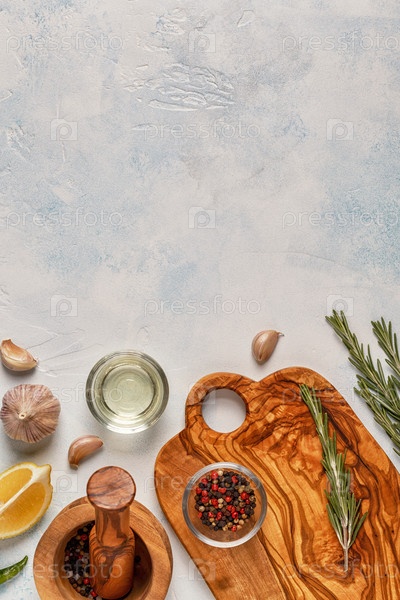 Разделочная доска и специи для приготовления пищи
