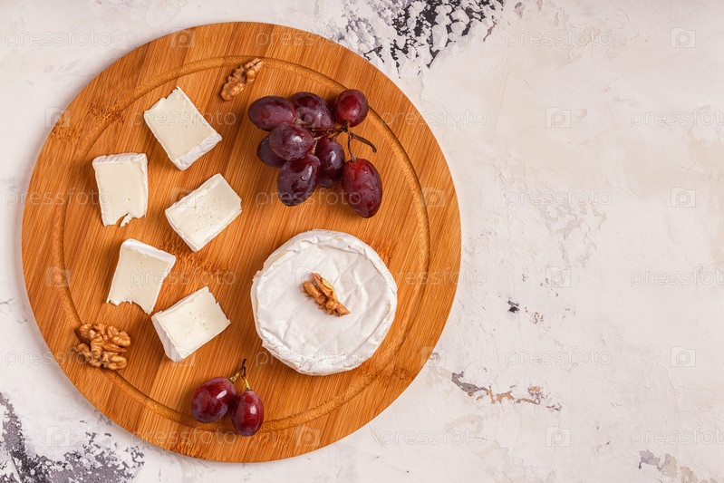 Блюдо с сыром, виноградом, орехами и медом