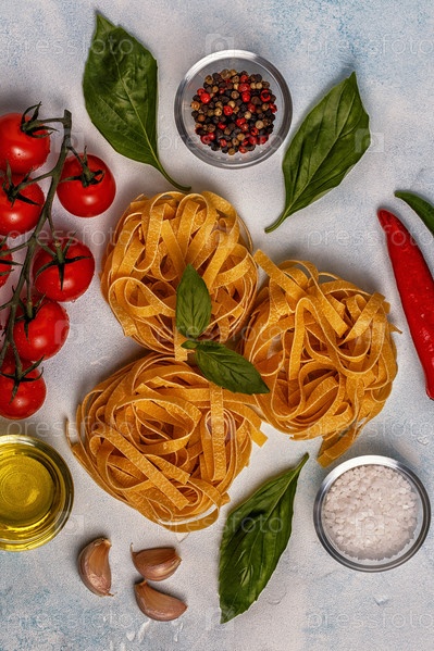 Фон итальянской кухни с макаронами, специями и овощами