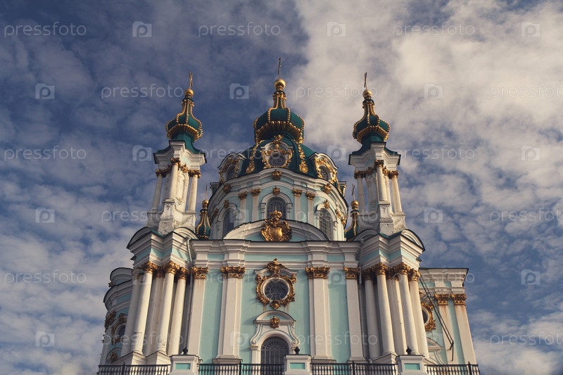 Андреевская церковь в Киеве (Украина) на фоне облаков