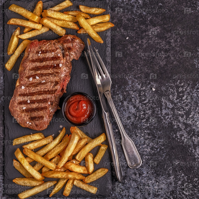 Стейк барбекю из говядины с картофелем фри