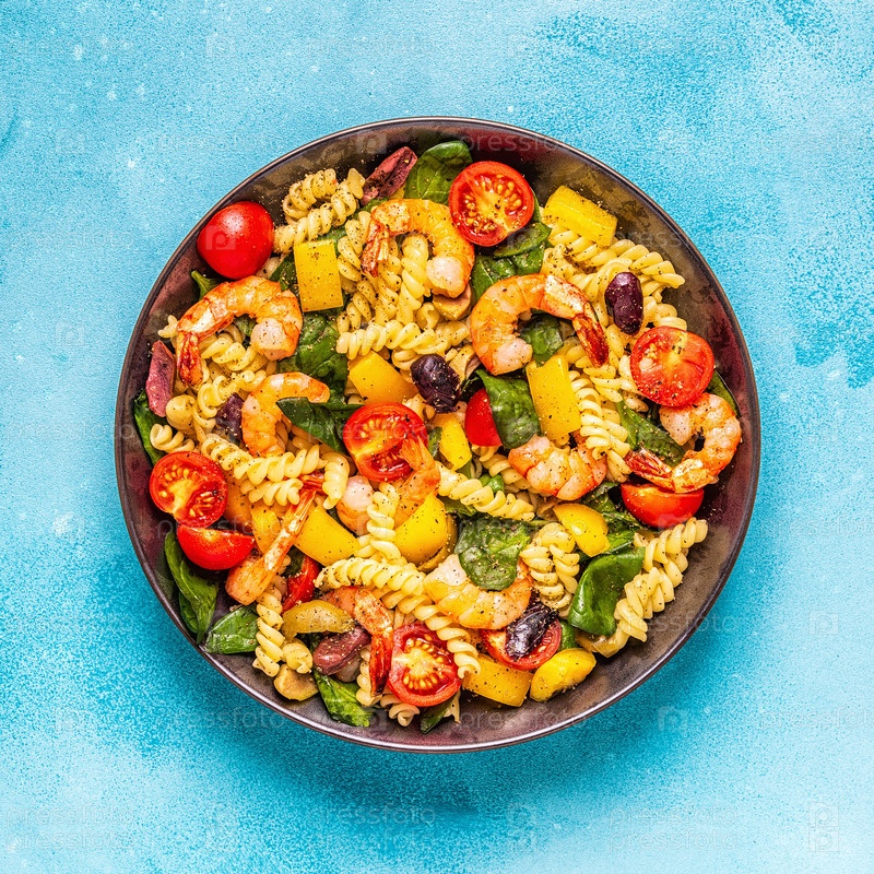 Салат из макарон Фусили с креветками