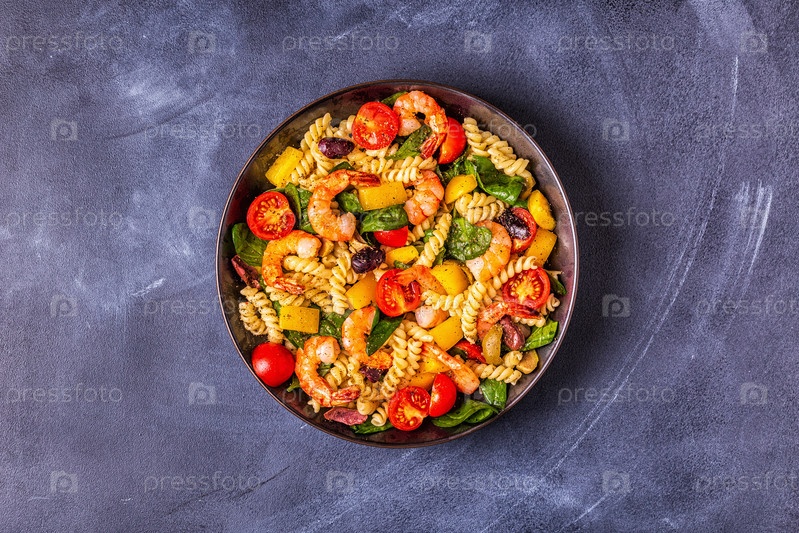 Салат из макарон Фусили с креветками