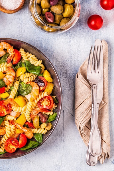 Салат из макарон Фусили с креветками