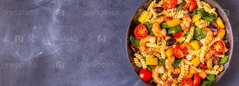 Салат из макарон Фусили с креветками