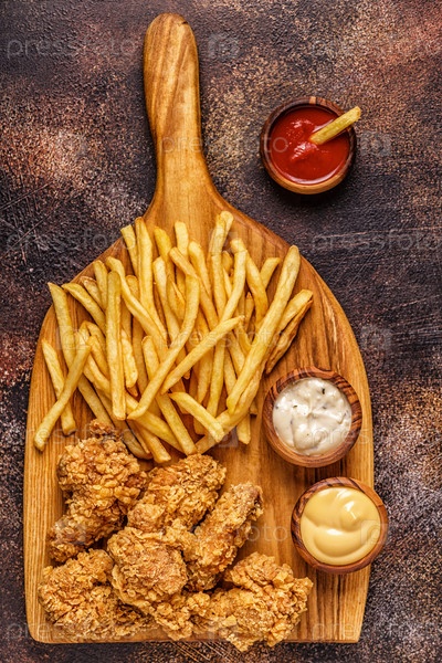 Жареные куриные крылышки с картофелем фри