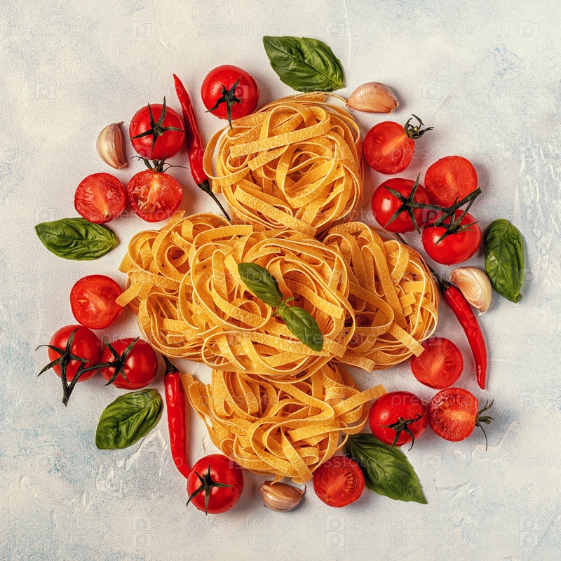Фон итальянской кухни с макаронами, специями и овощами