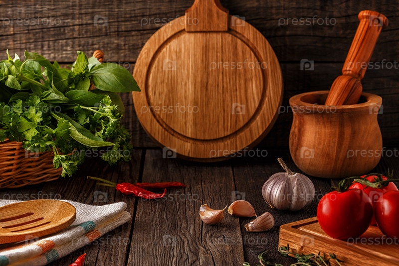 Овощи, травы, специи фон. Выборочный фокус