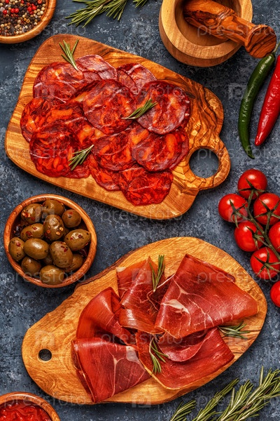 Испанские тапас с чоризо, хамоном, стол для пикника
