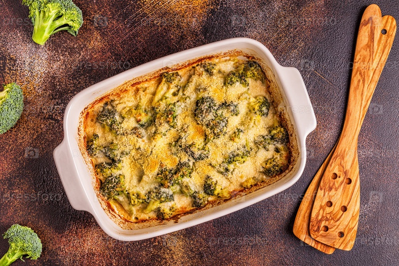 Гратен из брокколи в форме для запекания