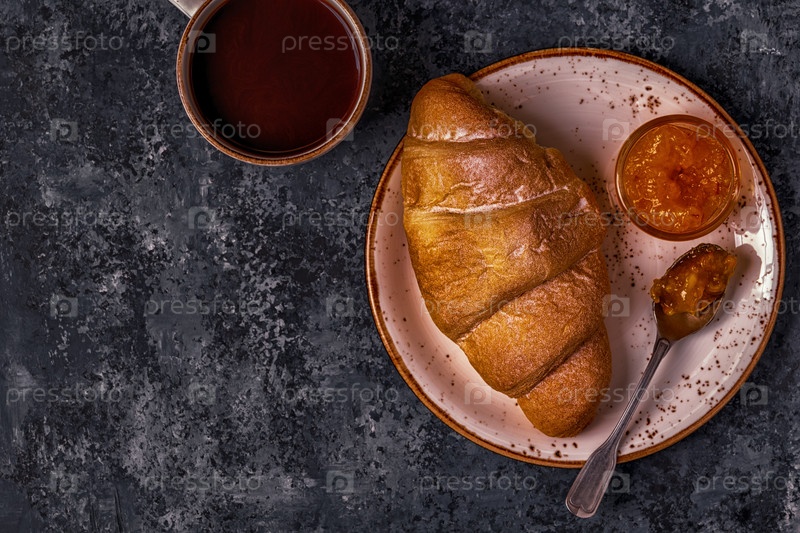 Свежий круассан на темном фоне
