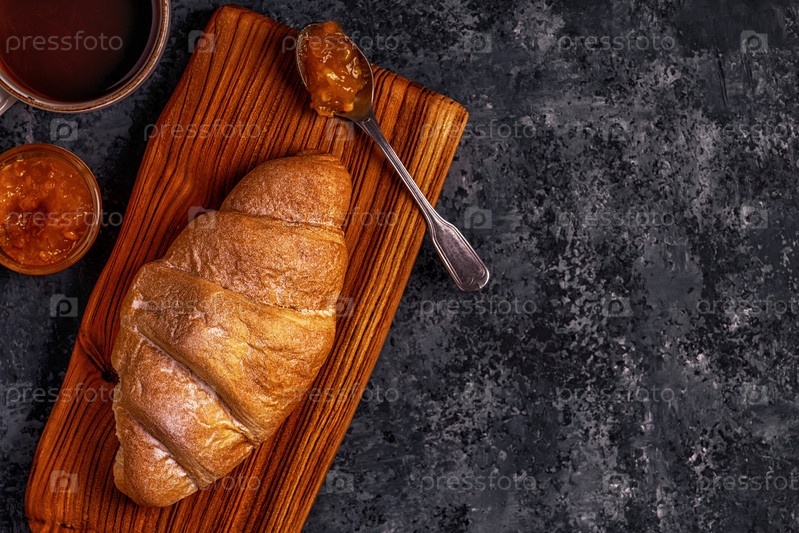 Свежий круассан на темном фоне