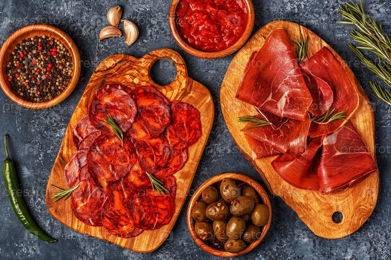 Испанские тапас с чоризо, хамоном, стол для пикника