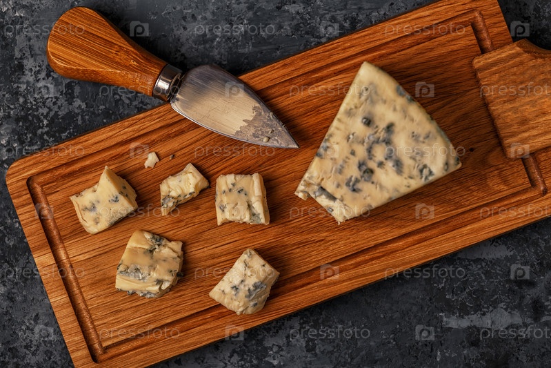 Кусочки голубого сыра на деревянной доске
