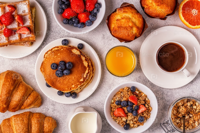 Вкусный завтрак на светлом столе