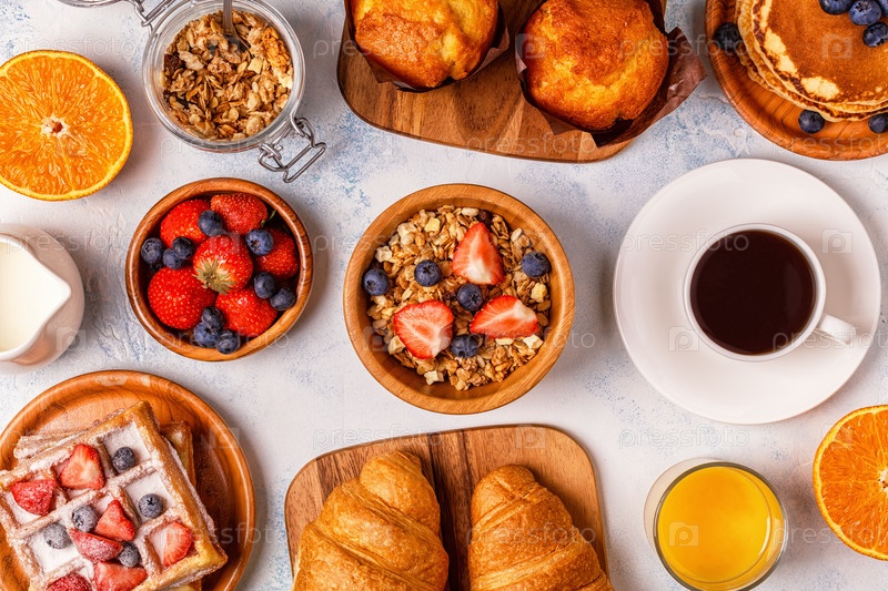 Вкусный завтрак на светлом столе