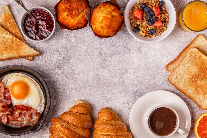 Вкусный завтрак на светлом столе