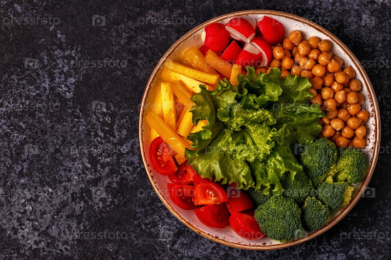 Чаша с овощами и нутом на темном фоне