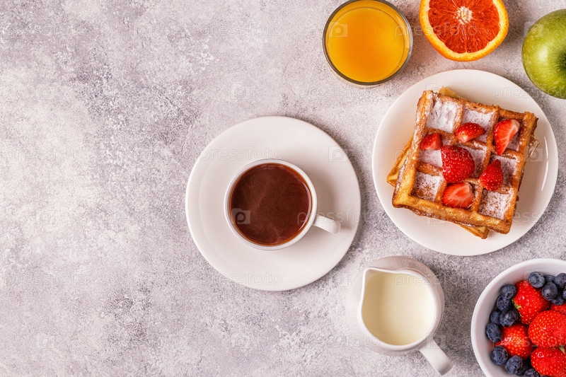 Вкусный завтрак на светлом столе