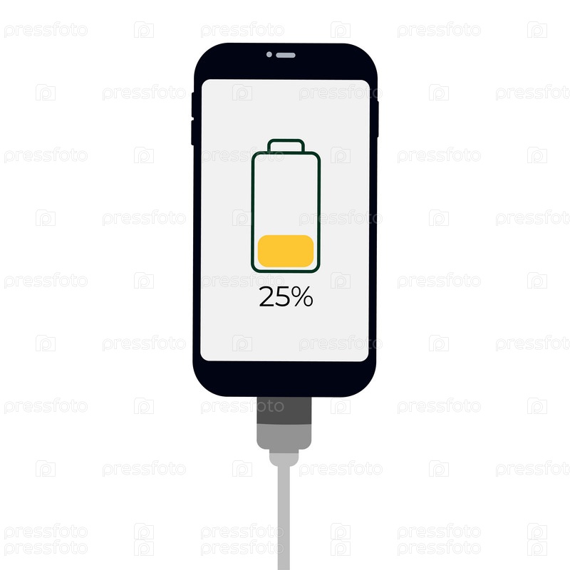 Смартфон с индикатором уровня зарядки батареи и подключением USB.Векторная инфографика