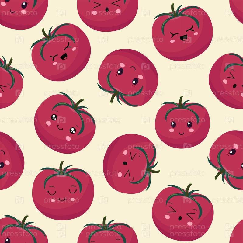 Бесшовный узор из розовых помидоров в стиле каваи. Векторная иллюстрация