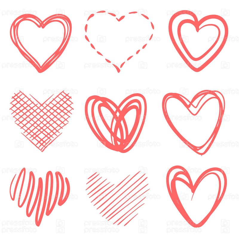 Набор розовых сердечек. Символ любви. Иллюстрация выделена на белом фоне