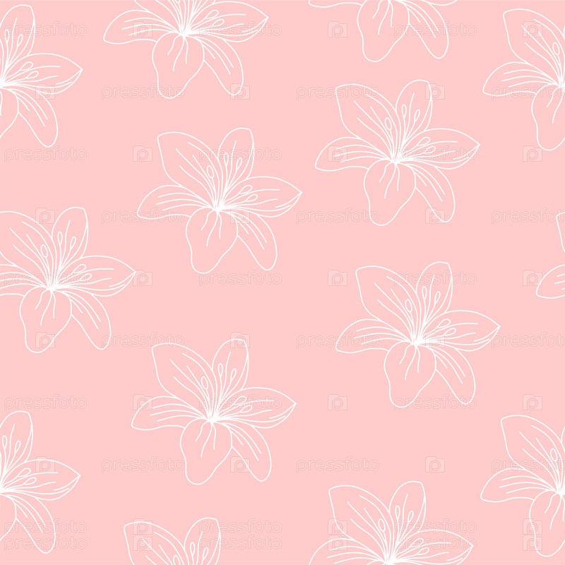 Бесшовный узор из лилий. Красивая нежная лилия. Векторная иллюстрация на розовом фоне