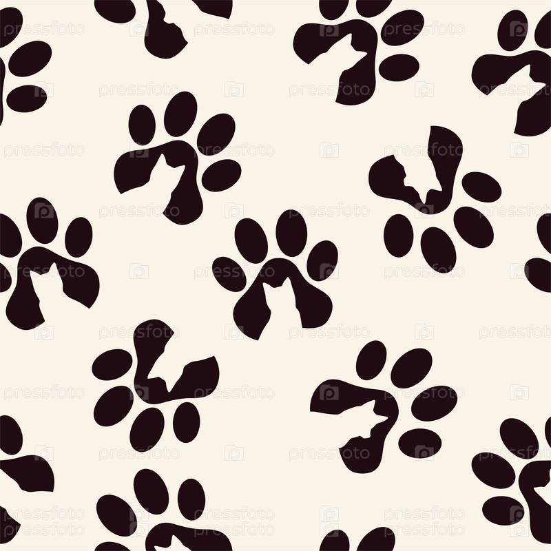 Бесшовный рисунок лап животных. Отпечатки лап. Значок щенка собаки и кошки. Следы домашнего питомца