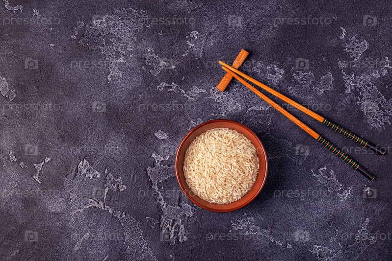 Рис в миске и деревянные палочки для еды