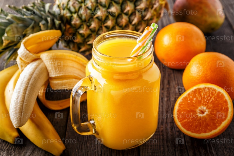 Стакан смузи с фруктами, выборочный фокус