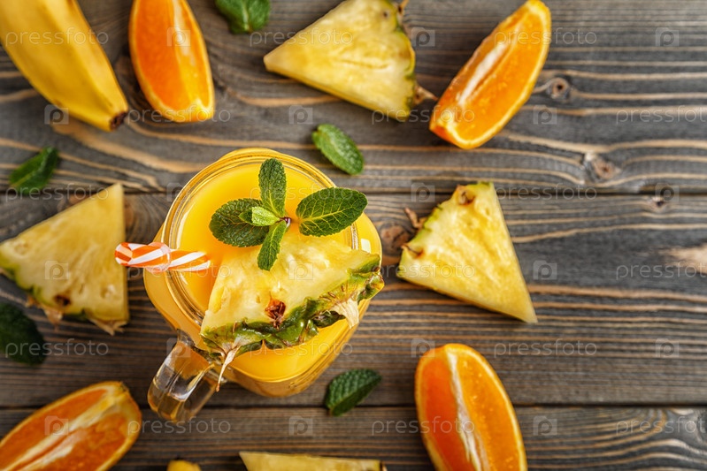Стакан смузи с фруктами, выборочный фокус