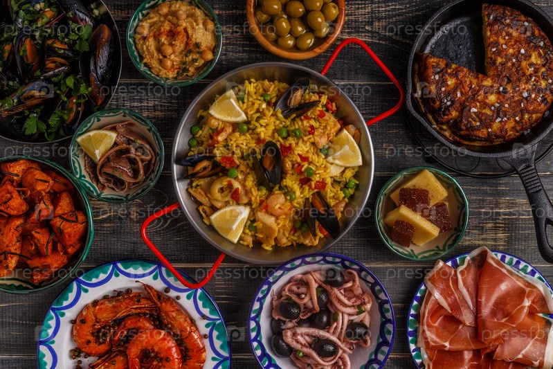 Типичная концепция испанских тапас, вид сверху