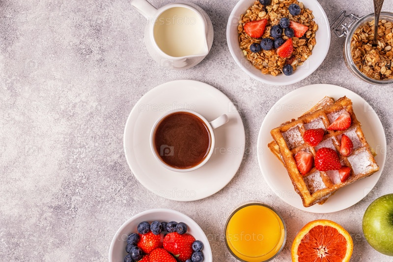 Вкусный завтрак на светлом столе
