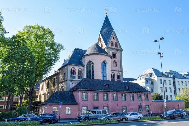 Фото городской улицы с церковью и проезжающими машинами