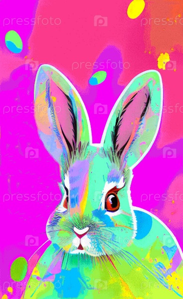 Разноцветный заяц с брызгами акварельной краски