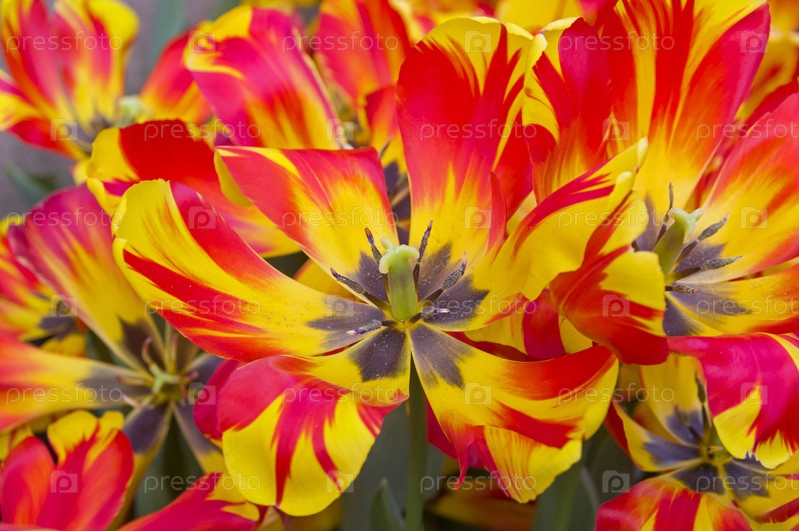 Яркие красно-желтые тюльпаны как фон