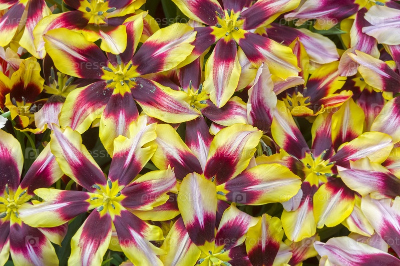 Полностью раскрывшиеся желто-фиолетовые тюльпаны как фон