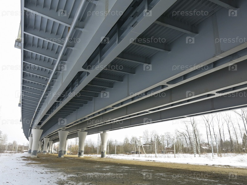 Пространство под современным бетонным автомобильным мостом в провинции ранней весной